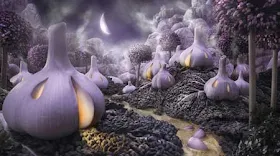 أشجار، والغابات المكونة من حبات الخيار، وغيرها من الأطعمة الطازجة”.